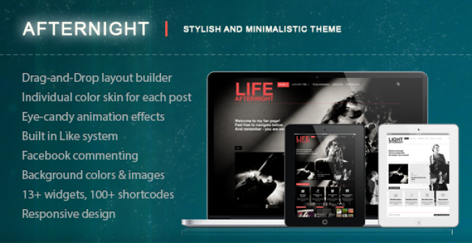 After downloading the file, install it as a plugin on your WordPress site and search for it: Afternight – A Stylish Minimalist Responsive Theme