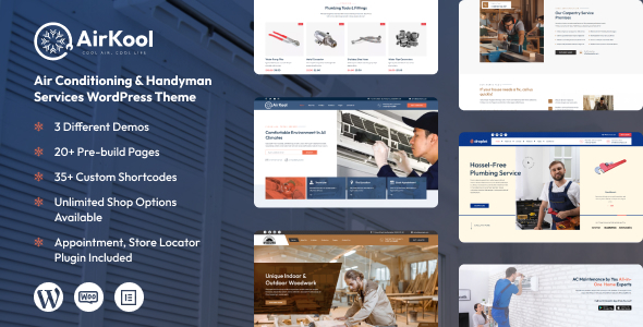 After downloading the file, install it as a plugin on your WordPress site and search for it: Air Kool – Conditioning HVAC, Handyman WordPress