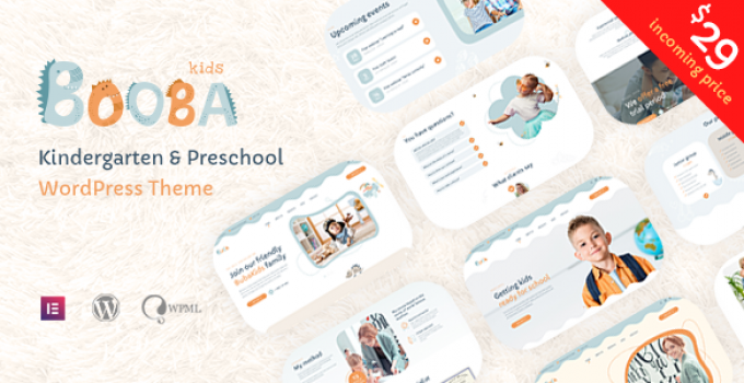 After downloading the file, install it as a plugin on your WordPress site and search for it: Booba – Kindergarten & Preschool WordPress Theme
