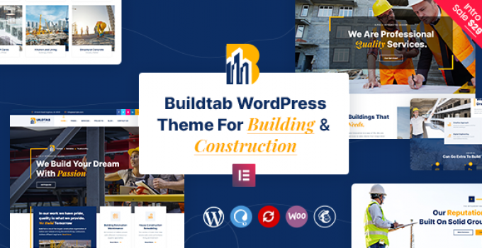 Related Tags: architecture wp theme, building firm, construction company, contractor, elementor, Engineering Website, handyman services, industrial theme, property development, renovation building, responsive theme, slider revolution, UI/UX designs, web templates, wordpress theme