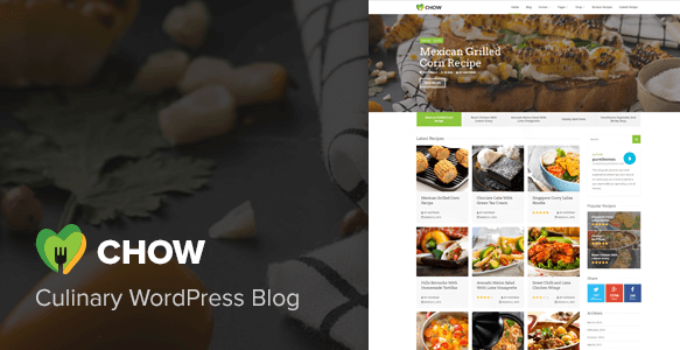 After downloading the file, install it as a plugin on your WordPress site and search for it: Chow – Recipe & Food WordPress Theme