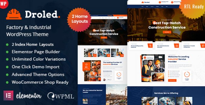 After downloading the file, install it as a plugin on your WordPress site and search for it: Droled – Factory Industrial WordPress