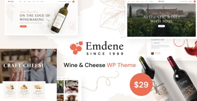 After downloading the file, install it as a plugin on your WordPress site and search for it: Emdene – Wine & Cheese WordPress Theme