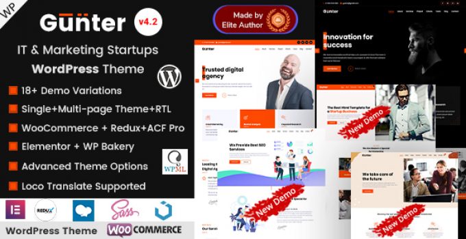 After downloading the file, install it as a plugin on your WordPress site and search for it: Gunter – IT & Marketing Startup WordPress Theme