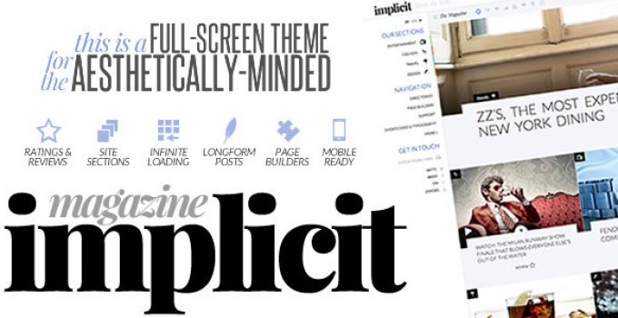 After downloading the file, install it as a plugin on your WordPress site and search for it: Implicit – Full-Screen Blazing-Fast Magazine Theme