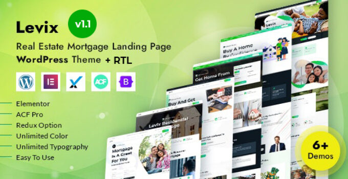 After downloading the file, install it as a plugin on your WordPress site and search for it: Levix – Real Estate Mortgage Landing WordPress Theme