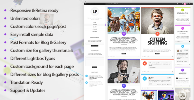 Related Tags: ajax, audio, blog, colorful, creative, gallery, grid, masonry, multi color, photography, portfolio, responsive, retina, unlimited colors, video