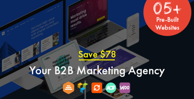 After downloading the file, install it as a plugin on your WordPress site and search for it: Marketing, B2B Marketing, Landing, SEO WordPress Theme – Royal