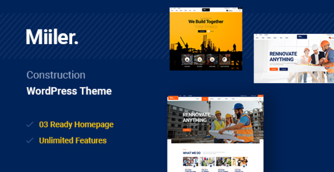 After downloading the file, install it as a plugin on your WordPress site and search for it: Miiler – Construction WordPress Theme