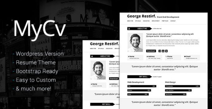 After downloading the file, install it as a plugin on your WordPress site and search for it: My Cv – Responsive And Retina WordPress theme / CV