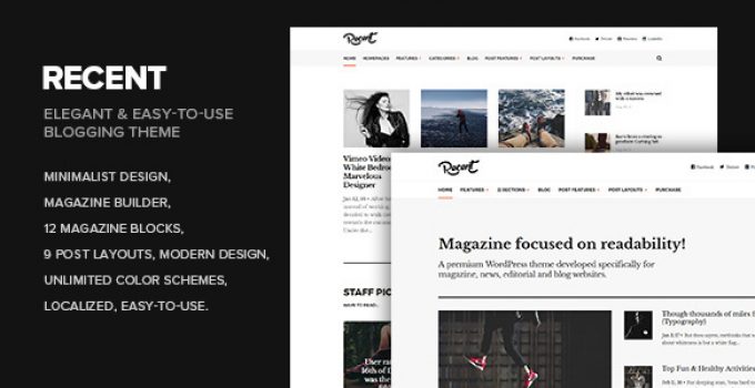 After downloading the file, install it as a plugin on your WordPress site and search for it: Recent – Magazine WordPress theme focused on readability