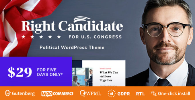 After downloading the file, install it as a plugin on your WordPress site and search for it: Right Candidate – Election Campaign and Political WordPress Theme