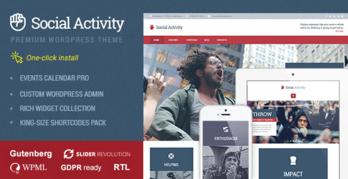 After downloading the file, install it as a plugin on your WordPress site and search for it: Social Activity – Politics & Activism WP Theme