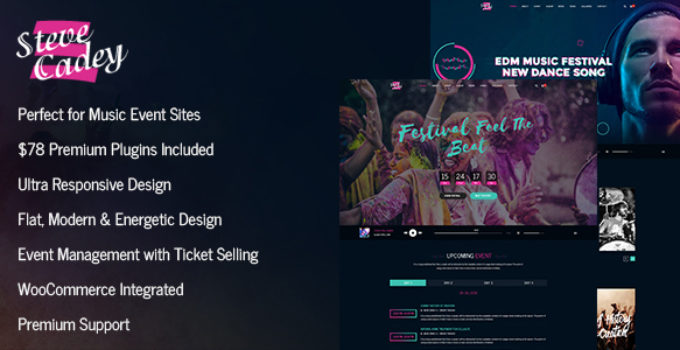 After downloading the file, install it as a plugin on your WordPress site and search for it: Steve Cadey – WordPress Music Theme For Musicians, DJs, Bands and Solo Artists