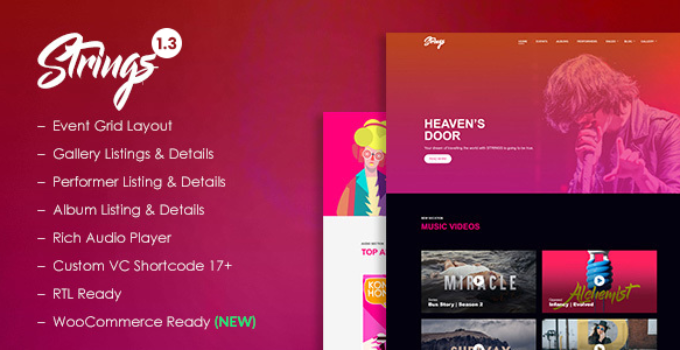 After downloading the file, install it as a plugin on your WordPress site and search for it: Strings – Music, Band, Artist & Event WordPress Theme