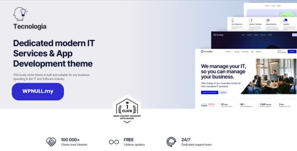 Tecnologia Theme Nulled is a sleek, modern, and performance-focused WordPress theme crafted specifically for IT services, software companies, SaaS startups, app developers, and tech support providers. Whether you’re building a cutting-edge software showcase or an engaging landing page for your next big app, Tecnologia gives you all the tools to bring your vision to life—without writing a single line of code.