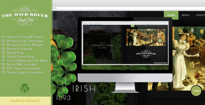 After downloading the file, install it as a plugin on your WordPress site and search for it: The Wild Rover–WP Theme For Irish Pubs