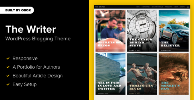 After downloading the file, install it as a plugin on your WordPress site and search for it: The Writer – Premium WordPress Blogging Theme