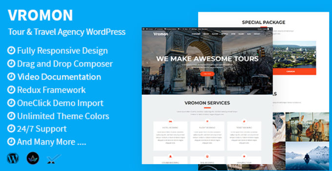 After downloading the file, install it as a plugin on your WordPress site and search for it: Vromon – Tour & Travel Agency WordPress Theme