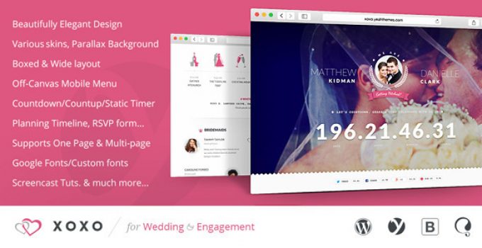 Related Tags: bridal, clean, countdown, countup, customizable, elegant, engagement, event, multi-page widgetized, onepage, timer, wedding
